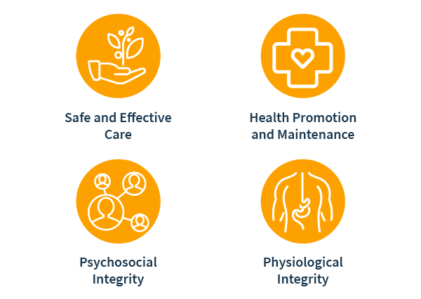 There are four main content categories covered on both NCLEX exams: