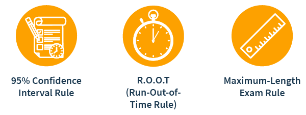 If a candidate sitting for the exam runs out of time before answering the maximum number of questions and the computer is unable to determine if the individual passed or failed with 95% certainty, an alternate rule applies: